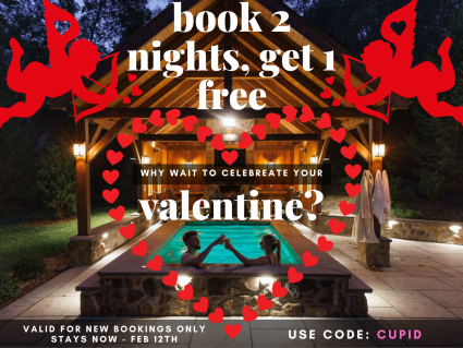 Book your 2 night romantic getaway, get your 3rd night FREE!