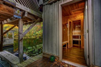 Originally built as a storage barn, the Boat House is the only cabin constructed entirely from wood milled on our property. One of the most popular accommodations at Cherry Ridge Retreat, the Boat House has received many updates over the years and is now designated as one of our pet-friendly locations. Featuring a private deck and gazebo and luxurious private sauna on the lake, this is truly one of the most unique cabins for couples and families.