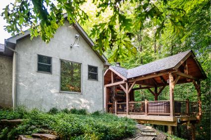 Set along the same picturesque pond as Water’s Edge, Still Waters features a terraced stone pathway that descends to a fire pit with a unique, natural rock wall backdrop. It sleeps up to four and features a private gazebo with deluxe four-person hot tub, newly renovated bathroom with two-person shower, king-size master bedroom with stunning double-sided glass fireplace, and remarkable views of the picturesque central pond.