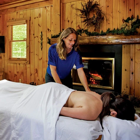 The Oak Ridge Luxury Cabin welcomes you with wide-plank wood floors, cathedral ceilings, picture windows, and stylish yet comfortable seating. Enjoy the sights and sounds of nature as you wine-and-dine in the open-plan, gourmet kitchen. A stone-lined, see-through, gas-log fireplace creates a striking, architectural statement—dividing the family room and master bedroom. While upstairs, two zero-gravity massage chairs and a large flat-screen TV with deluxe sound system await to create the utmost in-cabin theater and relaxation experience.